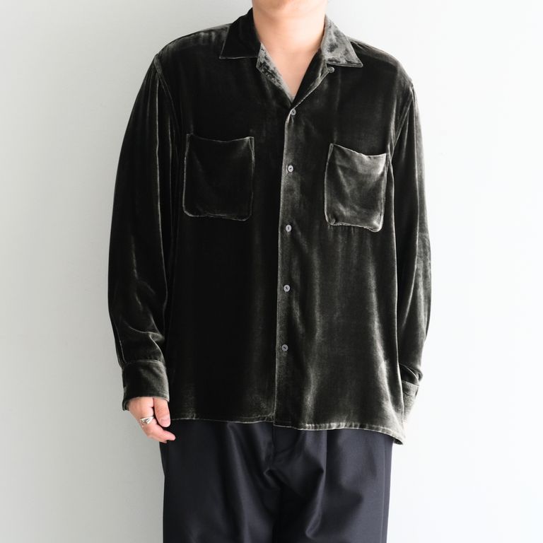 VELVET OPEN COLLAR SHIRTS ‐Silk Rayon‐ / シャツ / 開襟シャツ / シルク / レーヨン / ベルベット / Black