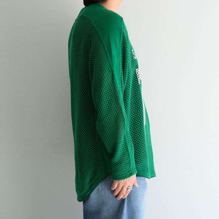 PRINTED FOOTBALL KNIT TEE - Mesh crochet - / プリントフットボールニットT- メッシュクロシェット -(Green)