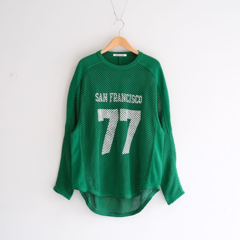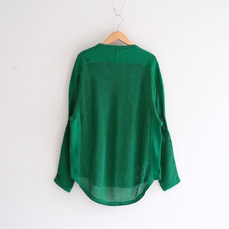 PRINTED FOOTBALL KNIT TEE - Mesh crochet - / フットボール / ニット / ロンT / ロングスリーブTシャツ / Green