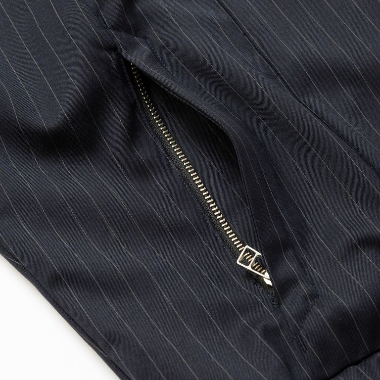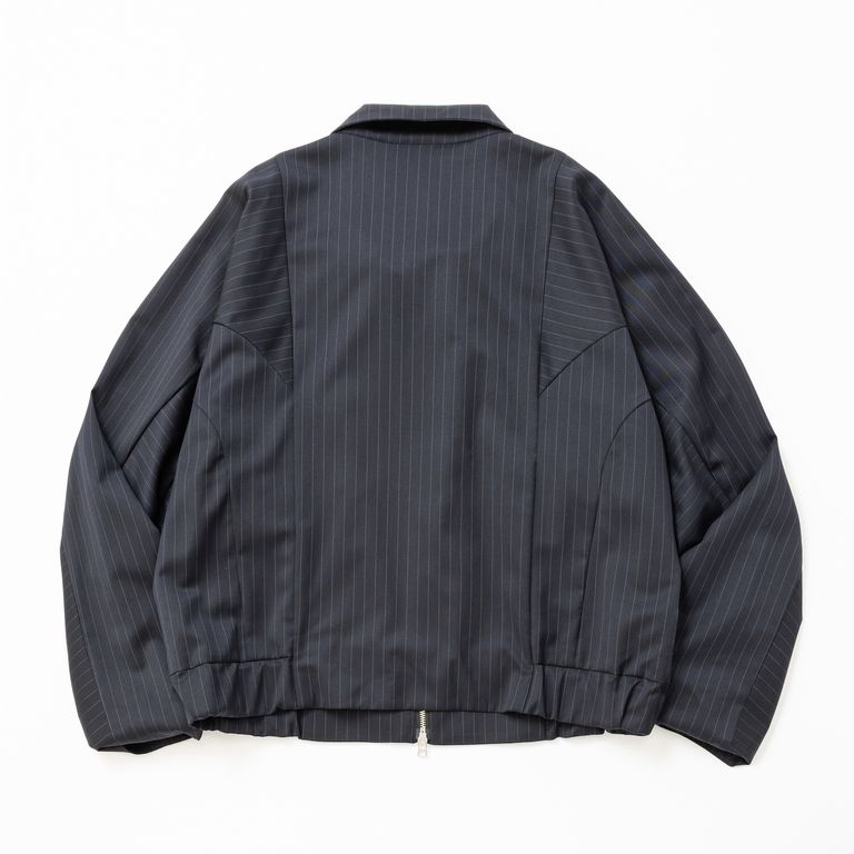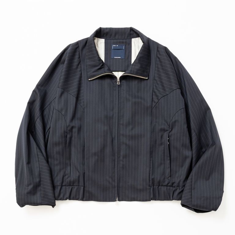 【入荷時期:2026年7月頃】Merino Wool Stand Collar Blouson / メリノウール スタンドカラー ブルゾン(NAVY STRIPE)