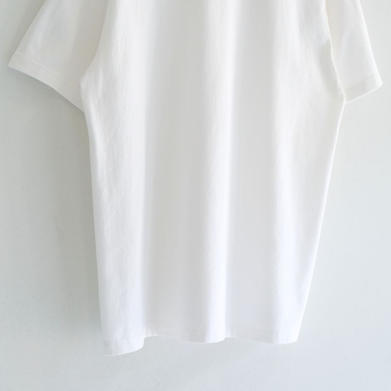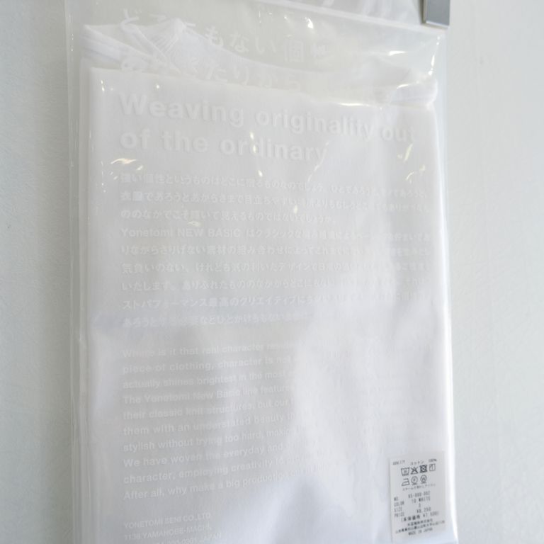 Yonetomi NEW BASIC T-SHIRT〈SHORT SLEEVE〉(WHITE) ¥8,250 税込 75 ポイント還元 発送目安日:1–2営業日 10,000円(税込)以上お買い上げで 送料無料 この商品は返品/キャンセル/サイズ交換不可になります 注文 サイズ(採寸)情報 質問する お気に入り コーディネートをリクエストする お電話でもご注文いただけます!お電話の際は 商品番号:699 をお知らせください。 電話をかける 0761-48-6028 サイズ 肩幅 袖丈 身幅 着丈 2(M) 48 20 53 70 3(L) 50 21 56 73 単位:cm 商品説明 【ベーシックウエアの基本となるシンプルなTシャツ】米富繊維と、メゾンブランドの生産を手掛ける日本を代表するカットソーメーカーとの協業により、夏は主役として、冬はセーターのインナーとして年間を通して着用できる理想のTシャツを開発しました。〈生地のこだわり〉インナーとしてのTシャツは少し透ける、ヘビーウエイトだと厚みがあってインナーとの兼用ができない。目指したのは、そうした悩みを解決した「ちょうどいい」1枚。アメリカ産のコットンとオーストラリア産のコットンをブレンドした太番手の糸を使用し、筒状に編まれた「丸胴(まるどう)天竺」には珍しい、7.5オンスの硬さとしなやかさのある特注生地を開発。しっかりと度詰めして編むことで、いわゆるヘビーウエイトのTシャツほどの厚みがなくても透けにくい、インナーとしてのTシャツと、アウターとしてのTシャツ両方に求める機能を兼ね備えた理想の生地が完成しました。着込むほどに身体に馴染み、雰囲気が増していくのも楽しめます。〈デザインのこだわり〉Tシャツの印象を決める首元には、ニット(横編)のマシンによって編まれたパーツを使用。洗い込むことでヨレてきてしまうTシャツの弱点とも言える首元に、しっかりと度詰めしたニットのリブを乗せることで、着込んでも形が崩れないよう工夫しています。また、かえってニットパーツが浮いてしまわないよう、馴染みのいいシングル付けを採用し、通常のTシャツと同様にタコバインダーで縫製することで統一感を出しています。パターンは、肩下がりや袖山の高さ、カーブのラインが整った、綺麗に見えるシルエットを意識しつつ、カジュアルウエアとしての着心地の良さを考えた設計。基本となるWHITEとBLACKの2色展開。〈パッケージのこだわり〉日常着としてのカジュアルなムードを出すため、Tシャツ専用のプリントネームを新たに作成。直接素肌に触れても気にならないよう、肌に刺さらない素材を使用し、ネームと品質を裏表でプリントすることで付属する枚数を減らしています。1枚ごとにオリジナルのパッケージにパックしてお届け。肉厚のジップ付き袋にYonetomi NEW BASICの「ありきたりから編み出す」ステイトメントがプリントされています。もともとは、工場から出荷しお店に届くまでの流通過程で、商品を汚さず安全な状態で運ぶための包装を、捨てずに使い続けてもらえるようなデザインとしました。【素材】COTTON:100% - 当店通販ガイド - 新規会員登録で500ポイント進呈!!新規会員登録はこちらからどうぞ会員様はお買上げ金額100円につき1ポイント贈呈!!-------------------------------------お買上げ合計10,000円以上で送料無料!!-------------------------------------instagramにて日々情報発信中!!公式アカウントはこちらからどうぞ 詳細情報 カラー WHITE 素材 cotton 100% ブランド Yonetomi 品番 95-000-002 カテゴリ トップス > Tシャツ・カットソー 性別 男性 返品 不可 ラッピング 可能 発送目安日 1–2営業日 配送方法 ヤマト運輸(送料について) お支払い方法 本商品でご利用可能な決済方法は下記となります。各お支払い方法についての詳細はショッピングガイドをご覧ください クレジットカード あと払い (ペイディ) 事前登録不要、クレジットカード登録不要。 メールアドレスと携帯電話番号だけで、今すぐ購入可能。 お支払いは翌月27日までに、コンビニ払い・銀行振込・口座振替で。 1か月に何度購入しても、お支払いは翌月まとめて1回でOK。 さらに、ペイディアプリから本人確認をすると、分割手数料無料*の3回あと払い**、ご利用可能額の確認、使い過ぎを防止する予算設定など、便利な機能がご利用いただけます。 *口座振替・銀行振込のみ無料 **1回のご利用金額が3,000円以上の場合のみ利用可能 楽天ペイ 代金引換 銀行振込 在庫の確保が完了した後に、【銀行振込のご連絡】メールをお送りさせていただきます。メールが届きましたら金融機関の3営業日以内にお振込みいただきますようお願い申し上げます。お振込確認後、当店より振込確認完了のご連絡をお送りさせていただきます。 サイズ(採寸)情報 サイズ 肩幅 袖丈 身幅 着丈 2(M) 48 20 53 70 3(L) 50 21 56 73 単位:cm このアイテムをシェア この商品について質問する